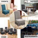 • The HOMSEF dining room chair covers are with the trendy pattern jacquard fabric and ruffled skirt design, These chair covers make your chair more stylish and classy, and freshen up your home decoration, and extend the life of the chair to save your money. Decorative chair covers can be used for dining rooms, Wedding banquets, restaurants, Hotels, Parties, Ceremonies, etc.
